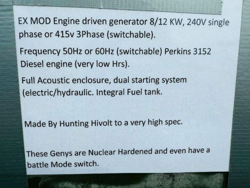 EX MOD ENGINE DRIVEN GENERATOR*C/W SINGLE OR 3PHASE*