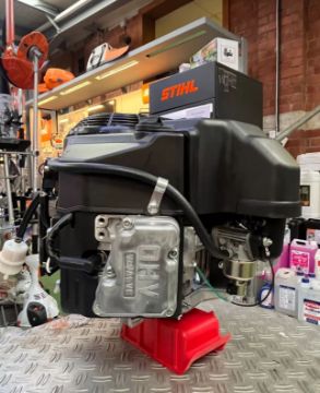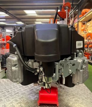 The FS481V has 90 degrees V-twin design with vertical PTO shaft, overhead V-valves, cast iron cylinder liners, spherical combustion chamber, rotating grass screen and integrated clean out ports. The engine is equipped with electronic spark ignition system, internally vented carburetor with fuel shut-off solenoid. The motor uses a high-performance lubrication system and dual-element air filter.