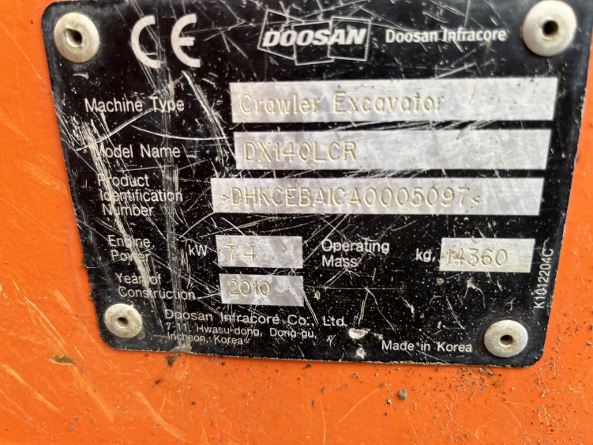 2010 Doosan Dx 140 Excavator Quick Hitch Zero Swing