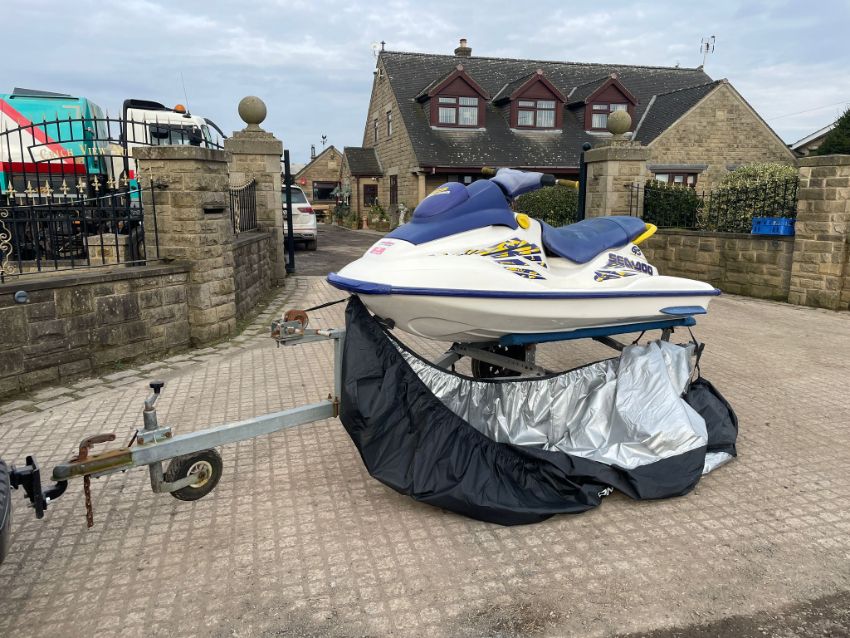 SEA-DOO GS BOMBARDIER PETROL JETSKI WITH SINGLE AXLE TRAILER AND COVER
